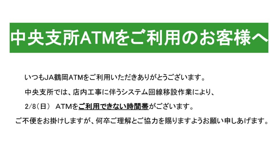 - topics 中央支所ATMの一時サービス休止について