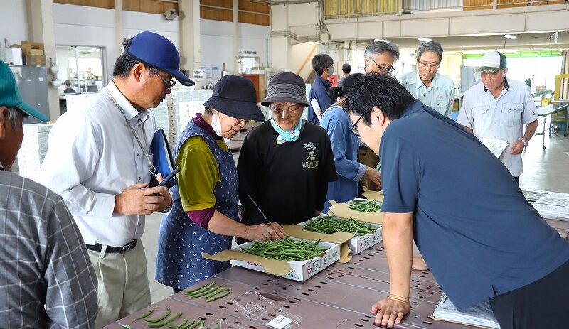 - topics サヤインゲン目揃い会で出荷規格を確認