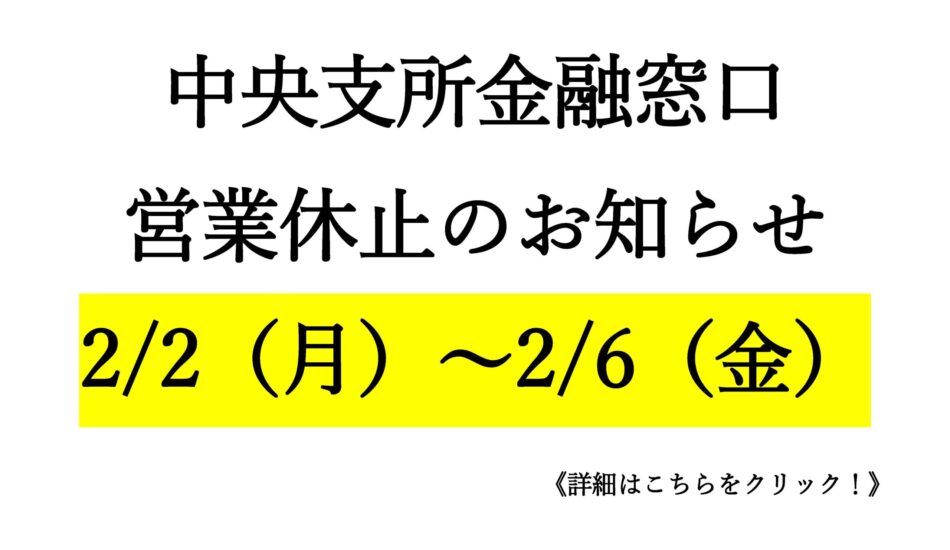 - topics 中央支所店内改装工事に伴う金融窓口の営業休止について