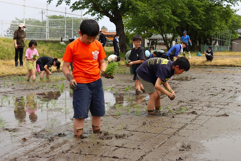 児童からは「転んで大変だったけど、みんなと田植えができて楽しかった。収穫も楽しみ」と笑顔で話した。