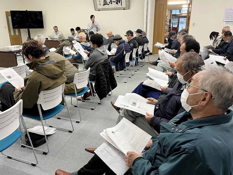 耕種部門では、各担当指導員が令和7年産の反省点と8年産に向けたポイント・注意事項等を説明し、参加者は熱心に耳を傾けていた。