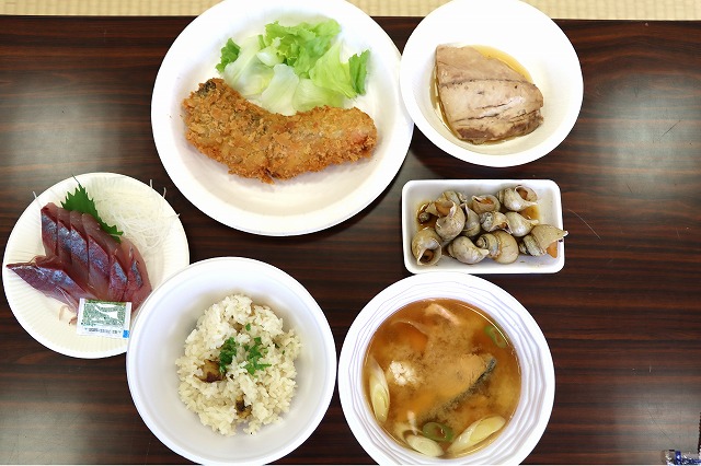 その他イナダの煮物、秋鮭のフライ、さざえの炊き込みご飯、ツバイ貝の煮つけ、あら汁の6品を作った。