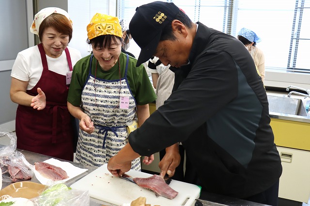 参加者は「今まで自己流でやっていたので基本のさばき方や刺し身の切り方を学べてよかった。家でもチャレンジしたい」と笑顔を見せた。