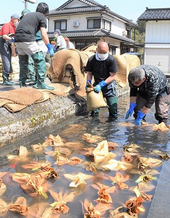 参加者は「煮豆を足でつぶす作業がいい運動になった。9月に自分で造ったみそを食べるのが楽しみ」と話した。