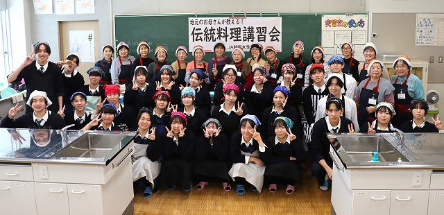 JA鶴岡女性部は2月6日、鶴岡市の県立鶴岡中央高校で伝統料理講習会を開いた。食文化の多様化が進む中、地域の郷土料理や伝統食を次世代へ受け継ごうと企画したもので、開催は今年で9回目となる。