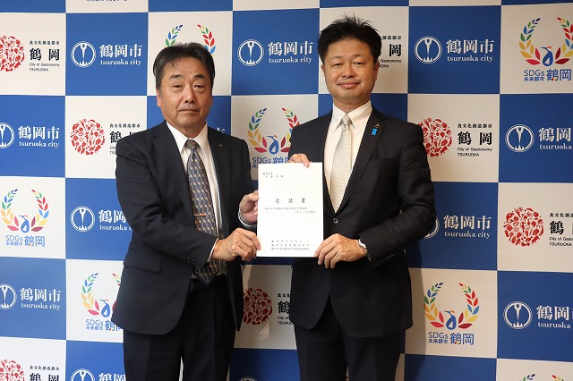 JA鶴岡とJA庄内たがわは11月25日、鶴岡市農業関連予算要望書の提出を行った。JA鶴岡の保科亙代表理事組合長とJA庄内たがわの海藤喜久男代表理事組合長が鶴岡市役所を訪れ、要請書を手渡した。