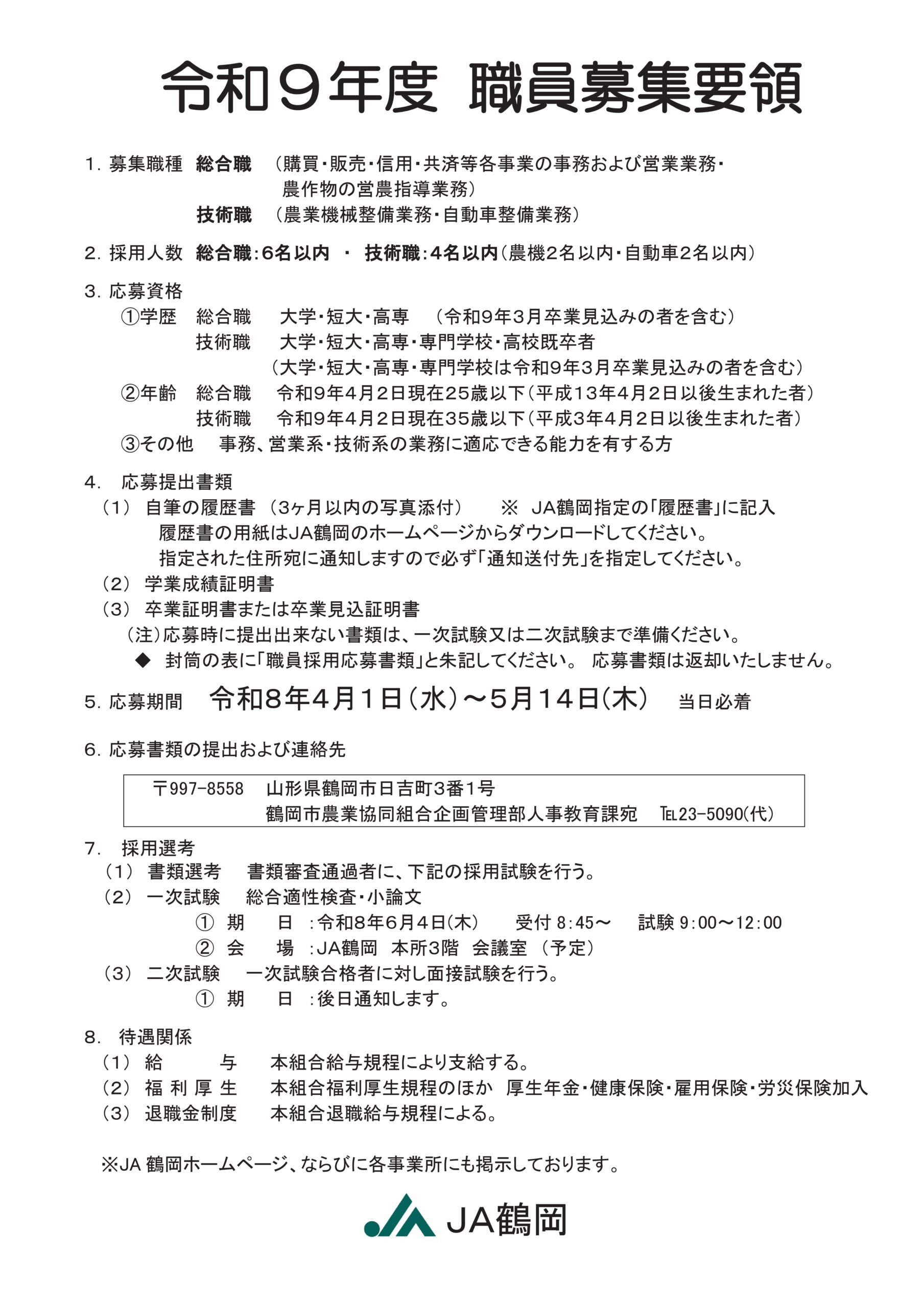 人事教育課メール:jinji@ja-tsuruoka.or.jp